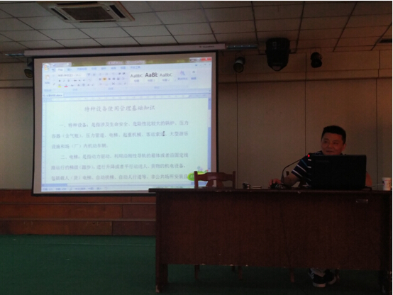 6月7日,市特检中心组织技术专家在市人民医院,以“全面落实特种设备使用单位主体责任”为主题,开展了一次主题宣讲活动。 此次活动是市特检中心落实市局安全生产月系列活动之一,对此,市特检中心高度重视,应六安市人民医院约请,针对市人民医院特种设备安全工作实际,选派了2名技术专家,为该院的安全管理人员和特种设备作业人员进行了内容丰富的专题讲座。重点讲解了锅炉、压力容器、压力管道以及电梯安全管理常识和操作技能,专家还宣贯了《特种设备安全法》、《特种设备使用管理规则》(TSG08-2017)等法律法规和安全技术规范。 人民医院特种设备安全管理和作业人员约40人聆听了讲座。
