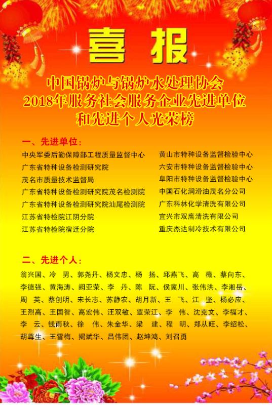 近日,中国锅炉与锅炉水处理协会通报表彰2018年度服务社会服务企业先进单位和个人,市特种设备监督检验中心荣获先进单位称号,中心王国智和沈克文荣获先进个人称号。 近年来,市特检中心始终坚持以服务经济、服务社会为宗旨,以强化公共服务能力建设为核心,建成60平方米的锅炉水质监督化验室,切实提升技术保障能力,牢固树立诚信、便捷、准确、可靠的服务理念,在锅炉年度检验中,对使用单位锅炉水质监测提供指导意见,并多次开展送技服务到企业活动,赠送锅炉水质处理试剂,现场指导锅炉水处理工作,全心全意为辖区企业发展提供优质、高效、廉明、热情的服务,着力推进全市锅炉水质达标,促进我市锅炉使用安全节能。 |