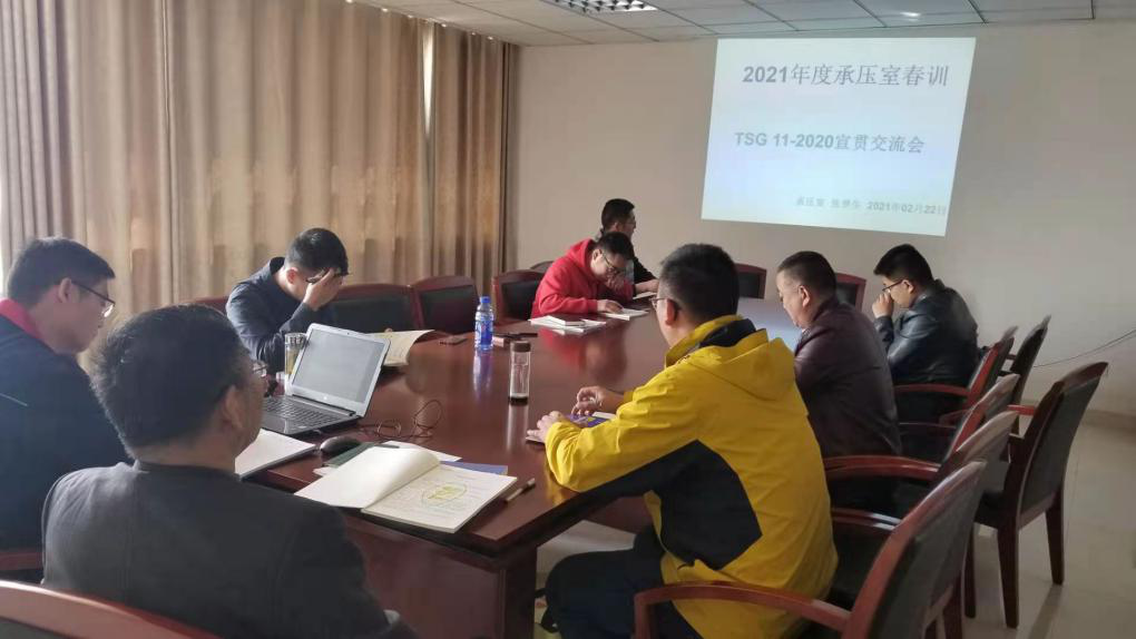 承压组主要进行新版《锅规》的宣贯和2020年报告考评点评、2020年监督抽查和资格换证发现问题分析探讨、《特种设备生产和充装单位许可规则》学习。