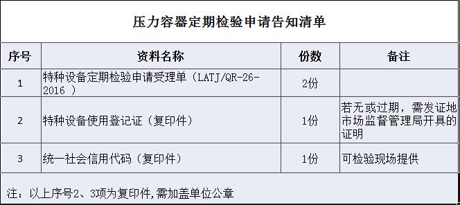 压力容器定期检验申请告知清单